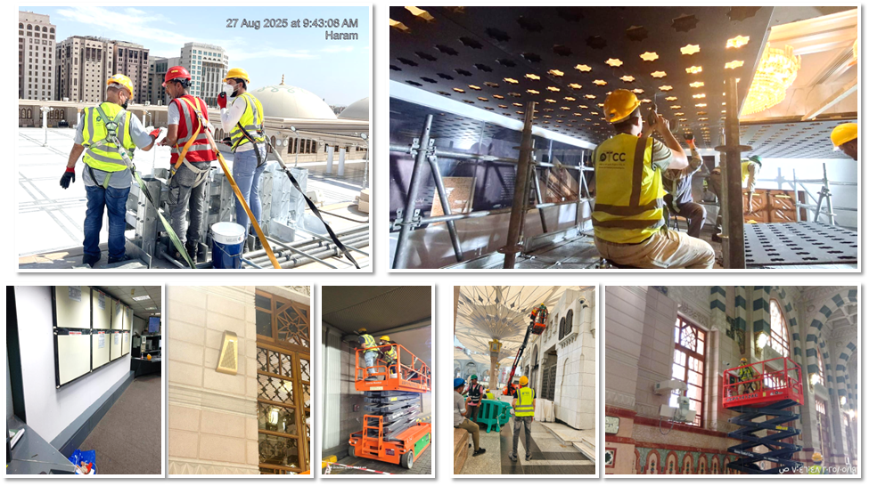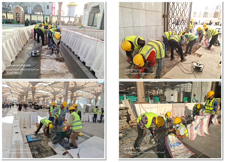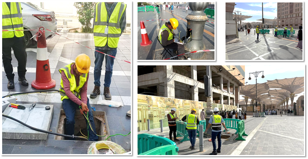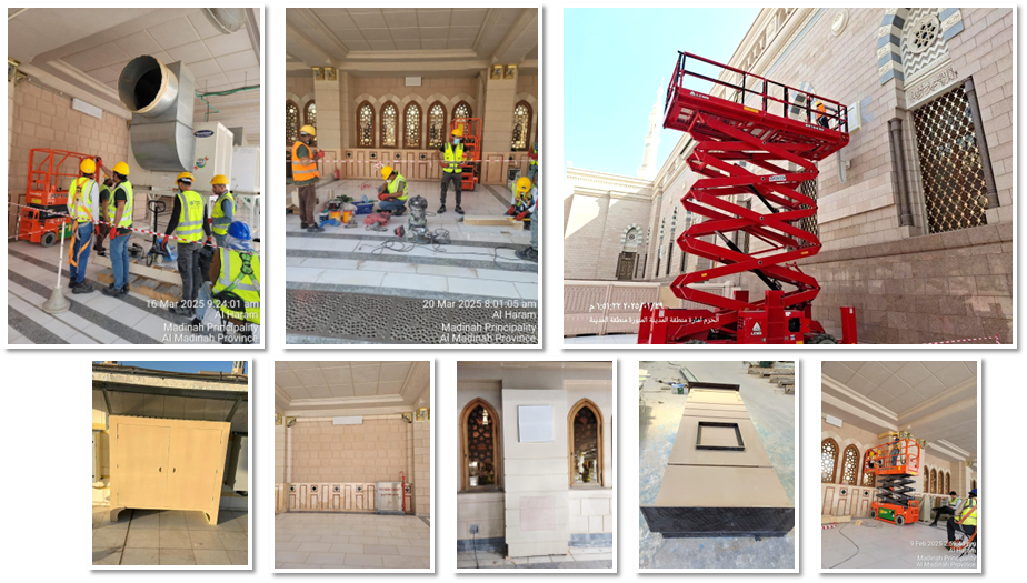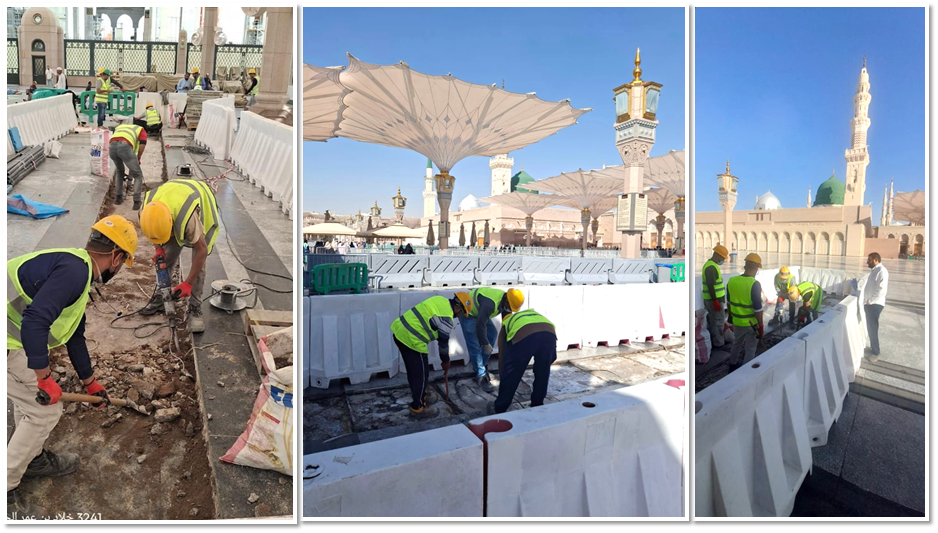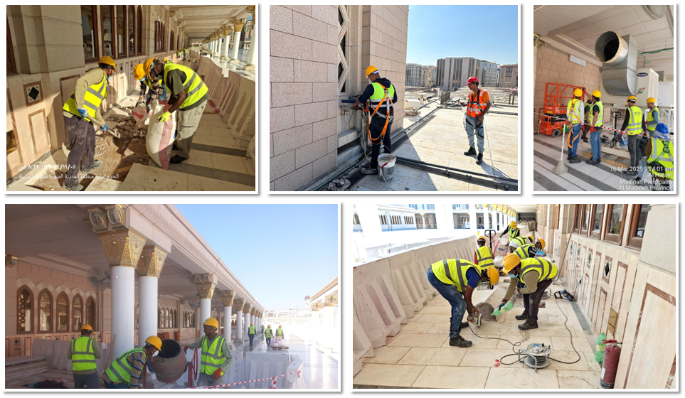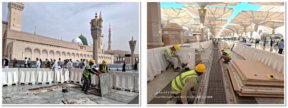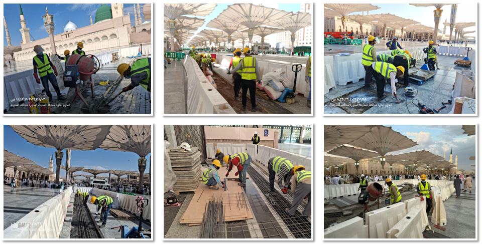 أعمال مدنية ومعمارية لتمديد وتغطية مواسير الصوت ومواسير إنذار الحريق في ساحات وسطح المسجد النبوي والمرافق والمواقف التابعة له
