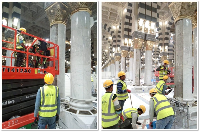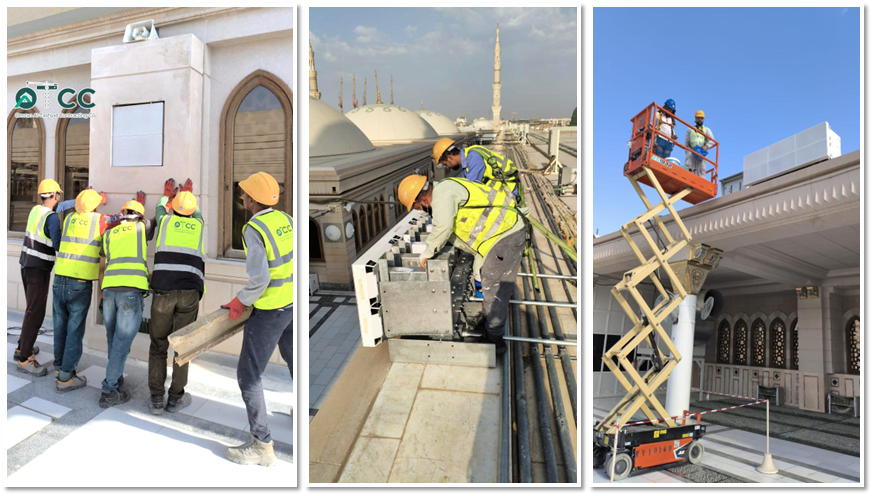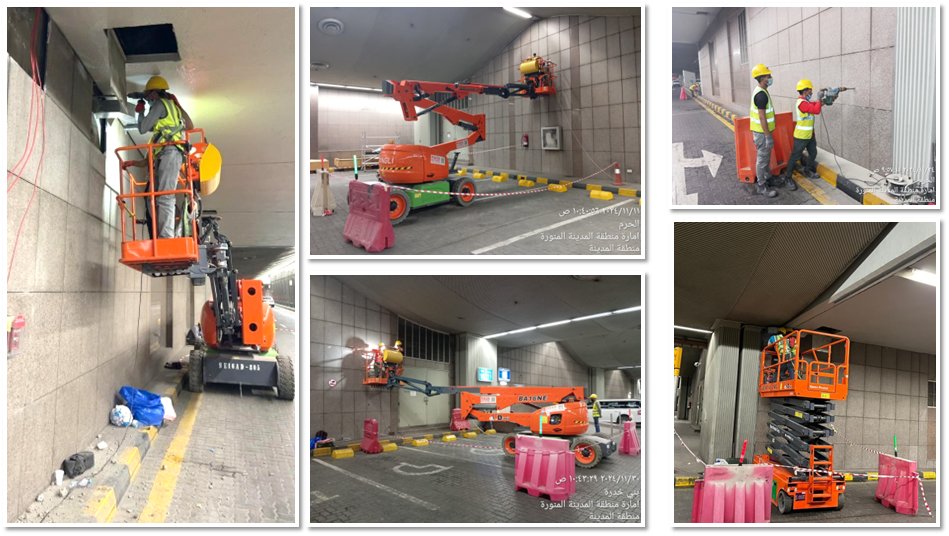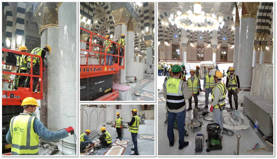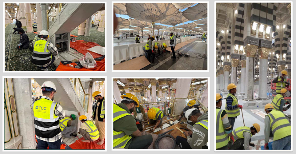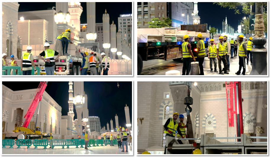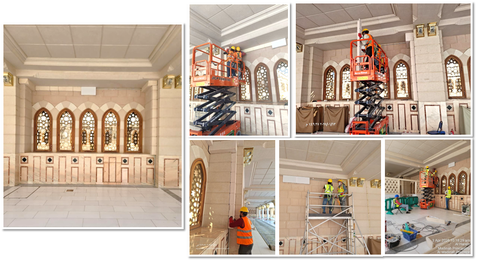 أعمال مدنية ومعمارية لتمديد وتغطية مواسير الصوت ومواسير إنذار الحريق في ساحات وسطح المسجد النبوي والمرافق والمواقف التابعة له