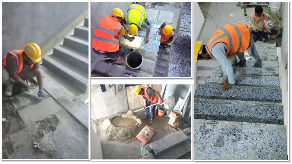 تركيب رخام للدرج الداخلي والخارجي تشمل قرابة 150 دور مقسمة على برجين في مدينة جدة