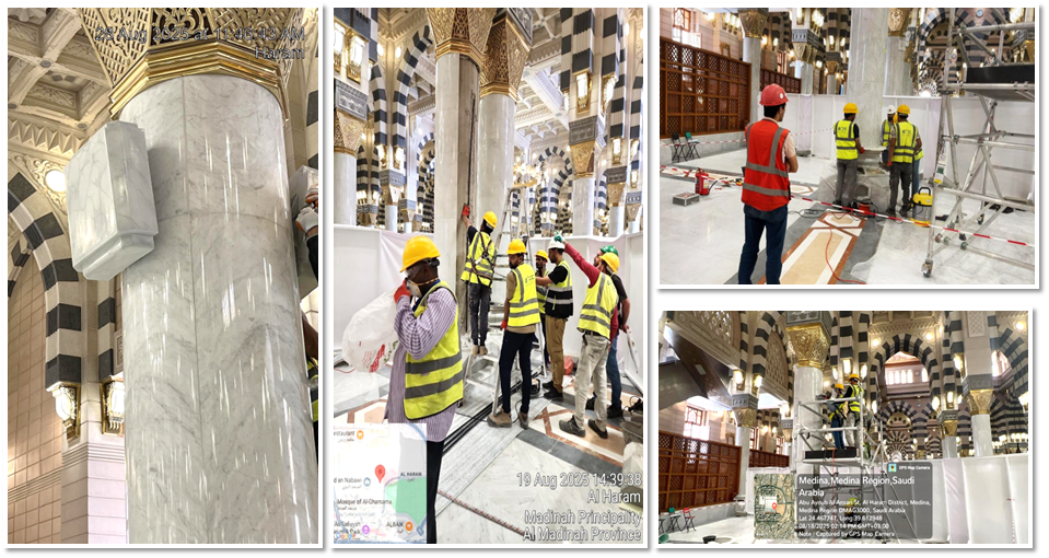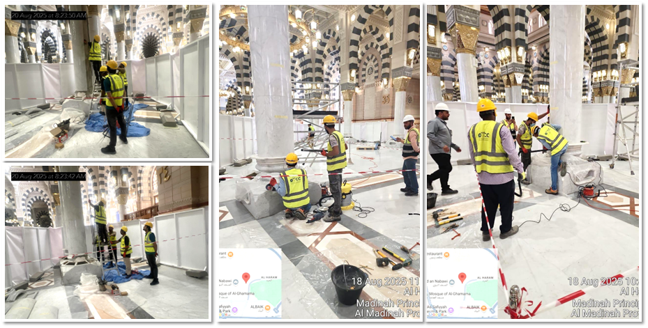 أعمال مدنية ومعمارية لتمديد وتغطية مواسير الصوت ومواسير إنذار الحريق في ساحات وسطح المسجد النبوي والمرافق والمواقف التابعة له